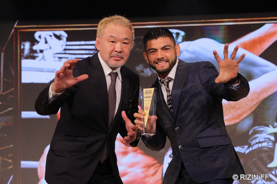 ベストサブミッションファイターにはホベルト・サトシ・ソウザ(右)。プレゼンターは桜庭和志