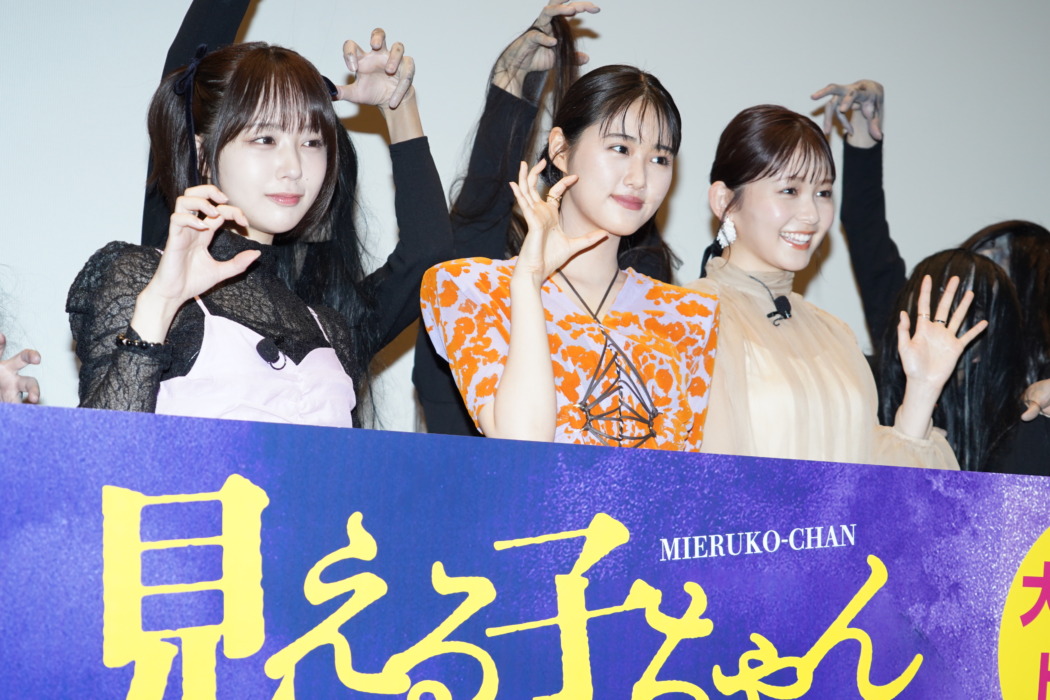 公開中の映画『見える子ちゃん』の舞台挨拶が14日、都内にて俳優の原菜乃華、久間田琳加、なえなのが登壇。「もし霊が見えたら?」というトークで盛り上がった。