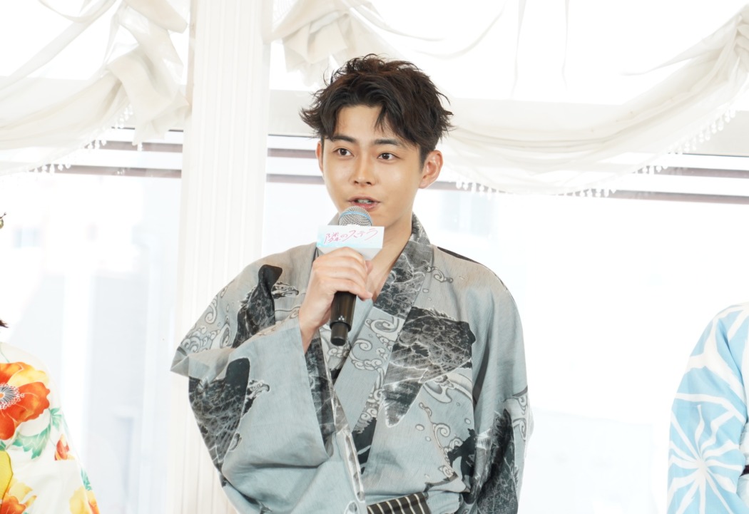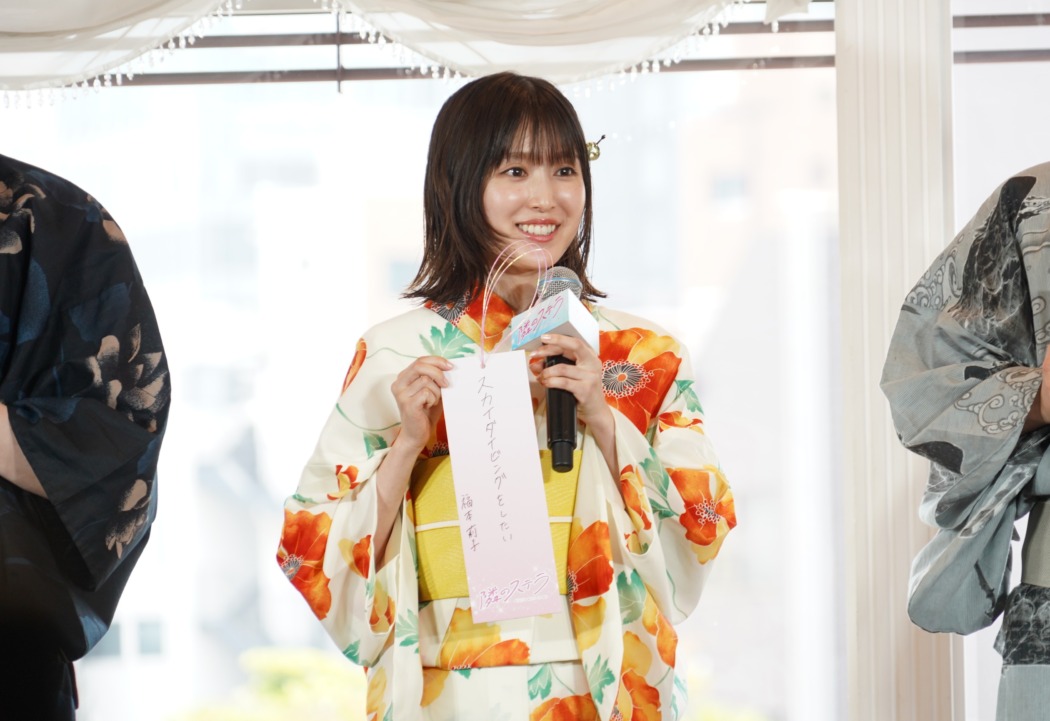 映画『隣のステラ』(8月22日公開)のイベントが7日、千代田区・東京大神宮にて行われ、俳優の福本莉子、八木勇征(FANTASTICS)らキャスト陣と松本花奈監督が七夕にちなみ浴衣姿で登壇。福本と倉悠貴が定番の胸キュンシーンの裏話を明かし笑いを誘った。