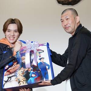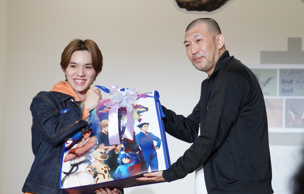 プロフィギュアスケーター・宇野昌磨が「大カプコン展 ―世界を魅了するゲームクリエイション」の取材会に登壇。先日28歳を迎えた宇野が、ゲームのキャラグッズを詰め合わせた誕生日プレゼントに感激した。