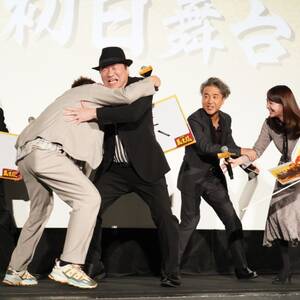 「勇者ヨシヒコ」シリーズをはじめとする福田組の集結に観客も大盛り上がり。福田監督も「この4人で一緒に立つのは『大洗にも星はふるなり』(2009年)以来かも。福田組のこの2人が主役の映画は17年間に及ぶ悲願だった」と感慨深げ。そこに、広瀬が「気まずい」と苦笑するとムロや佐藤は「新参加とは思えない」「ずっと福田組じゃないか」と、広瀬の体当たり演技を大絶賛。