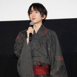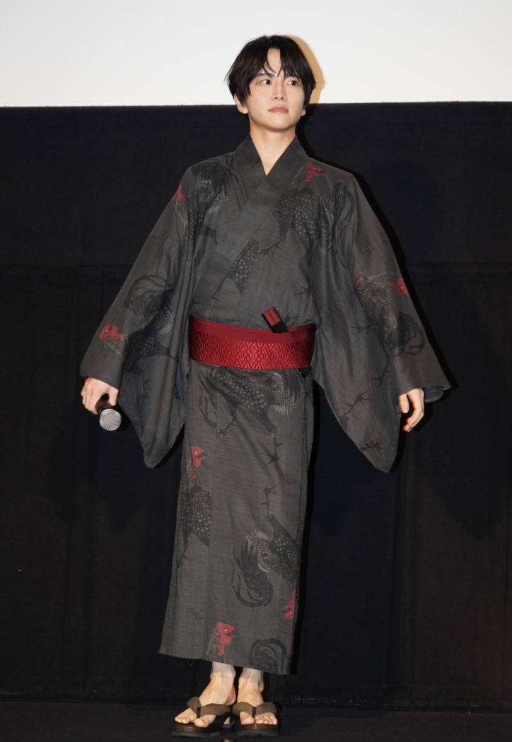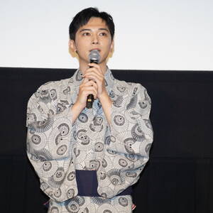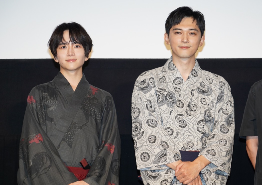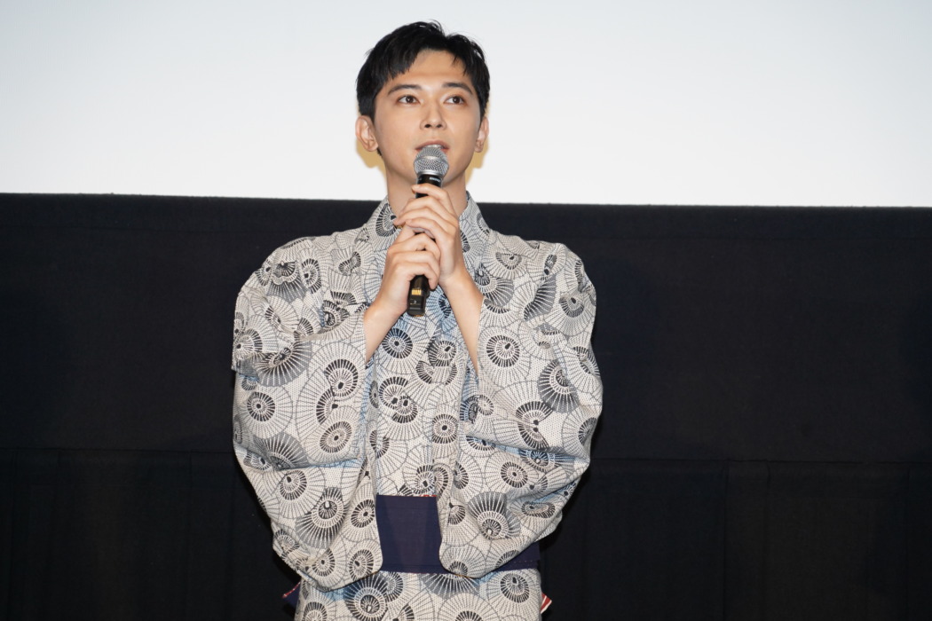 涼やかな浴衣姿で登場した吉沢と板垣。吉沢は板垣に「映画では甚平姿だったので、今日のような浴衣も大人っぽくていい」、板垣は吉沢に「当時は蘭丸役で体も作っていらしたけど今日もまた違った着こなしが素敵です」と照れながら互いの浴衣姿をほめ合う2人に、会場もほっこり。