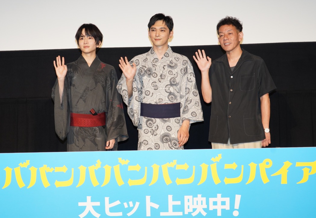 公開中の映画『ババンババンバンバンパイア』の舞台挨拶が15日、都内にて行われ、俳優の吉沢亮、板垣李光人と浜崎慎治監督が登壇。吉沢が板垣の年齢と「役者の幅」に脱帽した。