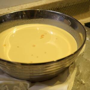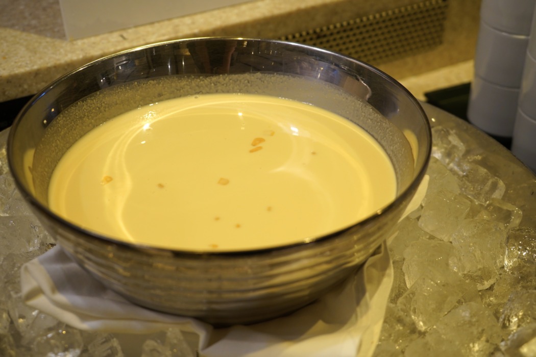 テーブルセッティングも、テーマである「“お花(開花)”」をイメージ。ブルーとイエロー、ホワイトで統一されたランチョンマットや花が、華やかでいて上品なしつらえを演出。