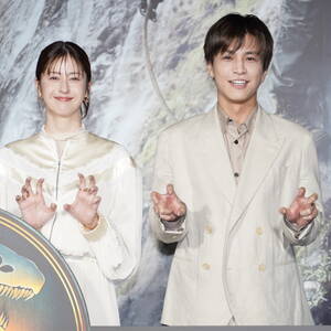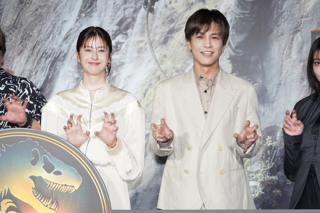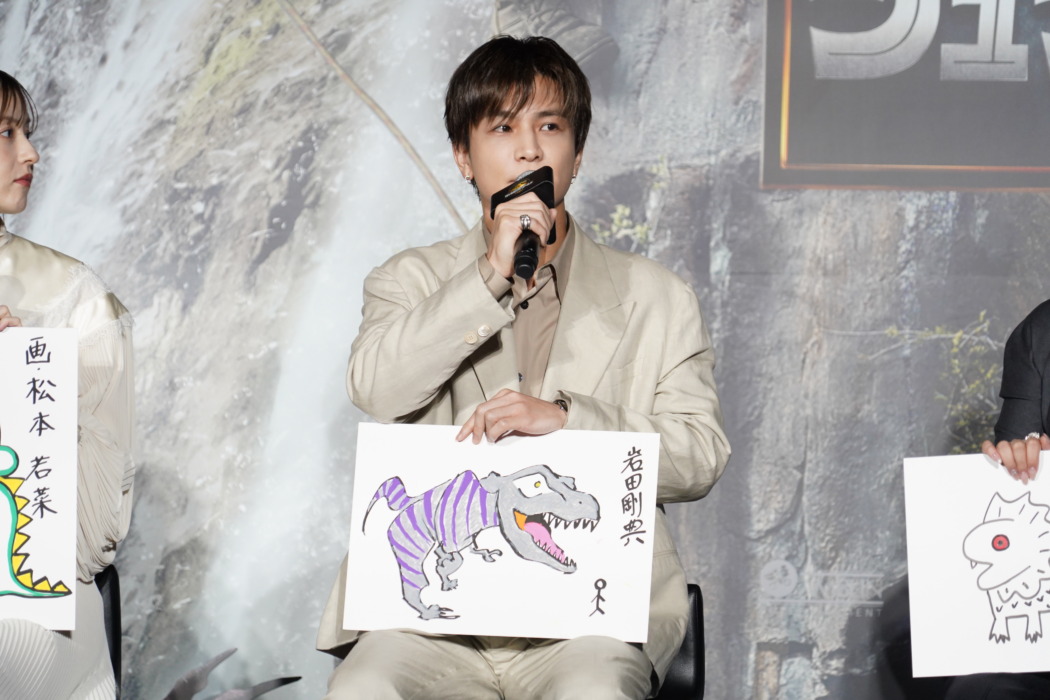 映画『ジュラシック・ワールド/復活の大地』(8月8日公開)のイベントが1日、都内にて行われ、日本語吹替キャストの松本若菜、岩田剛典、吉川愛、楠大典が登壇。一同が手描きの恐竜イラストを披露した。