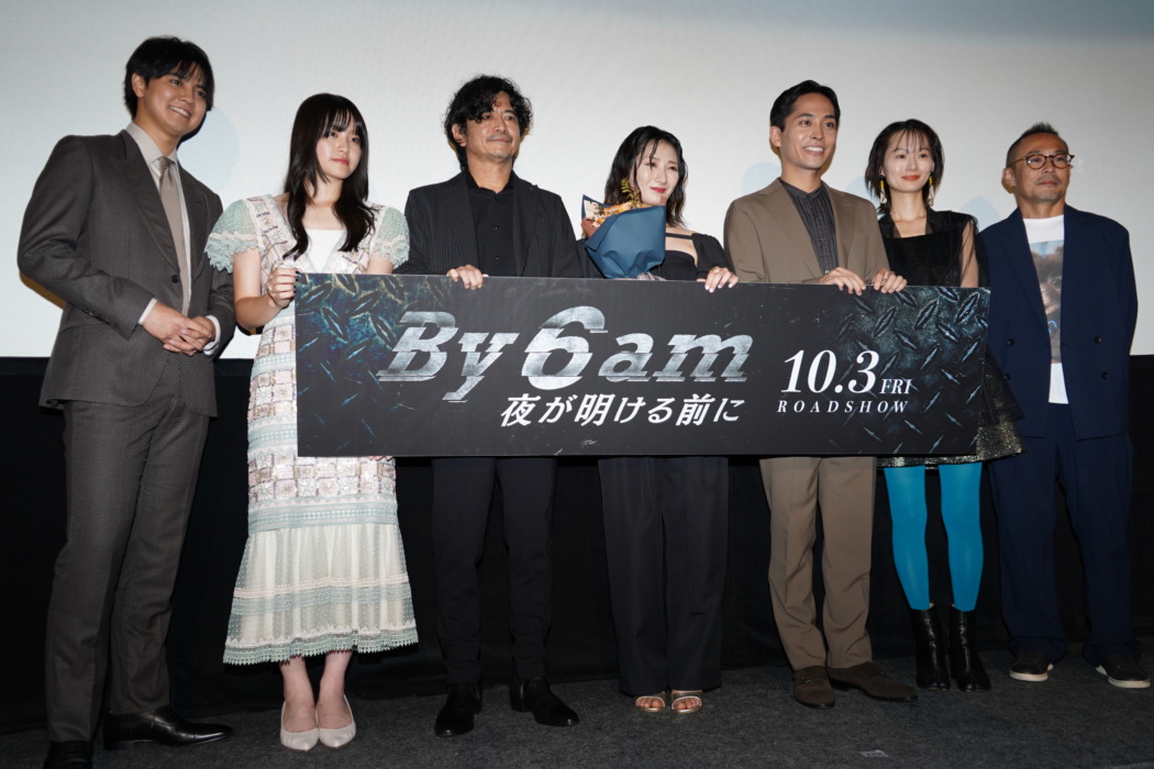 映画『By 6 am 夜が明ける前に』(10⽉3⽇公開)の完成披露舞台挨拶が15日、都内にて行われ、主演の武⽥梨奈らキャスト陣と向井宗敏監督が登壇。主題歌を担当した⽚寄涼太(GENERATIONS from EXILE TRIBE) もサプライズで駆け付け、武田の圧巻アクションを絶賛した。