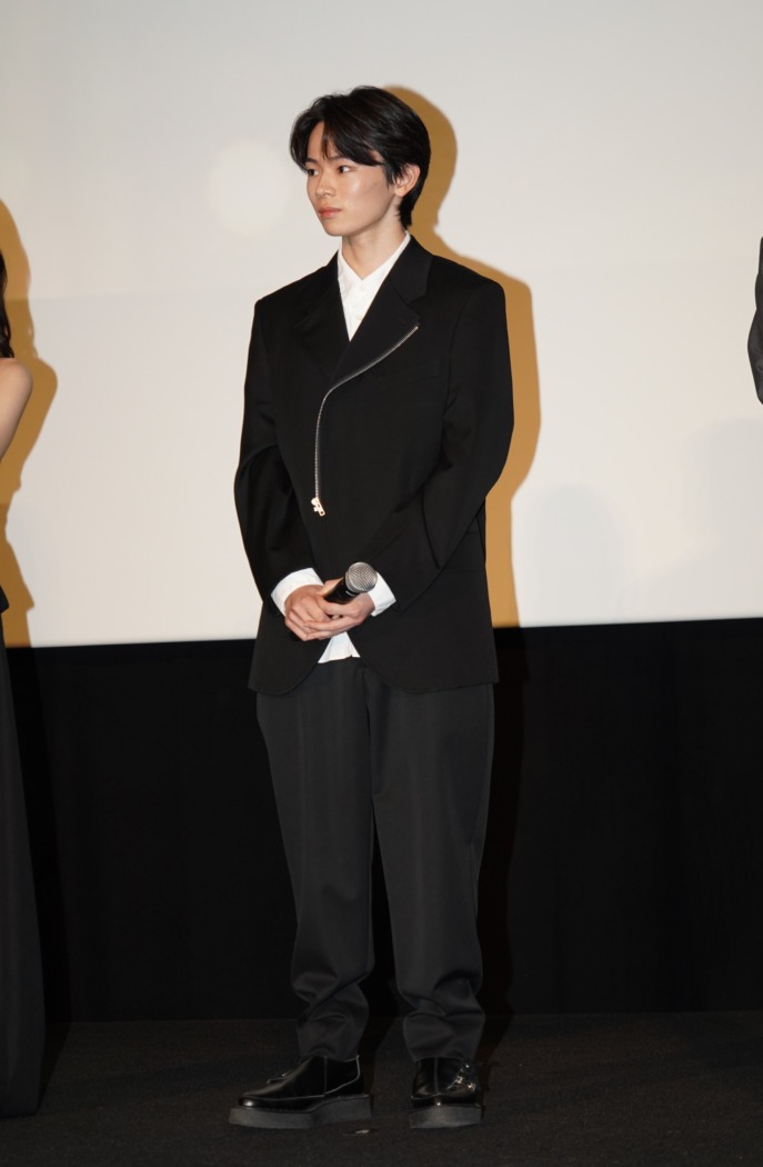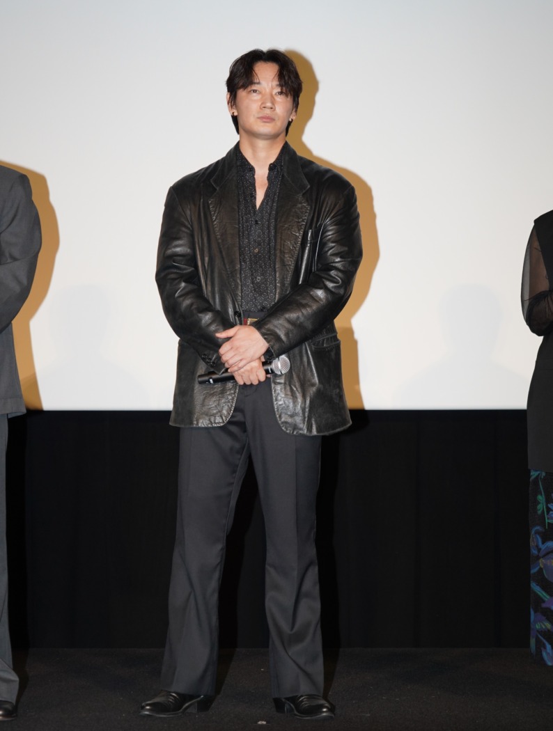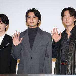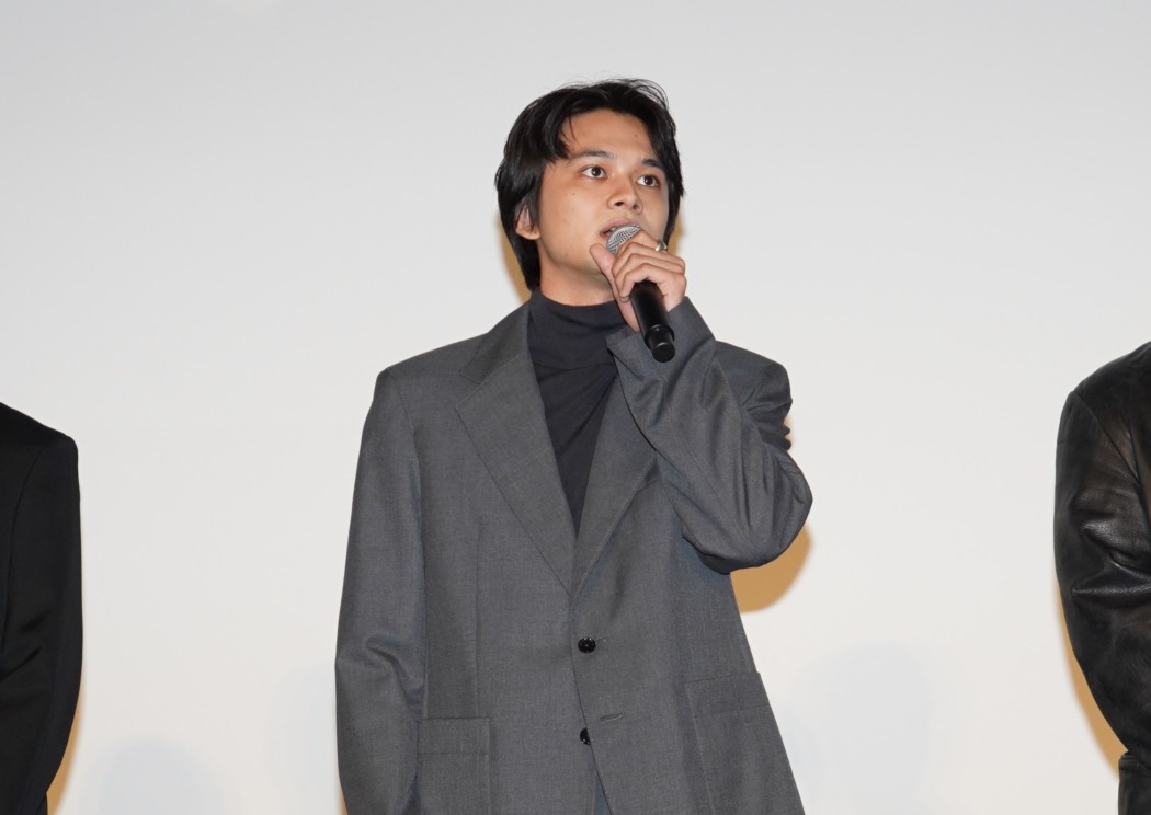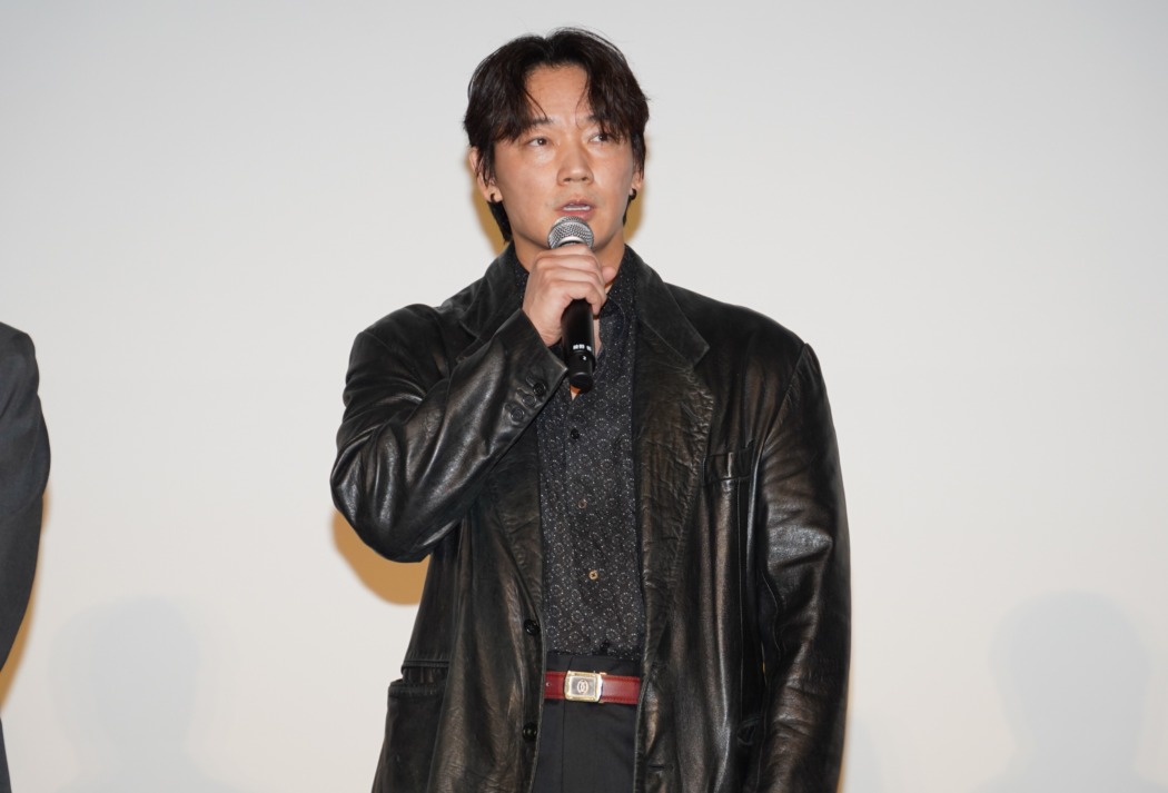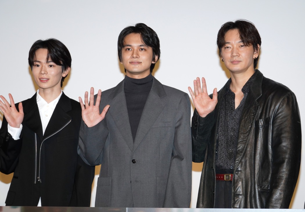 公開中の映画『愚か者の⾝分』の舞台挨拶が25日、都内にて行われ、俳優の北村匠海、林裕太、綾野剛、⼭下美⽉と永⽥琴監督が登壇。「汗の質」まで演じ分ける綾野に共演俳優が感服した。
