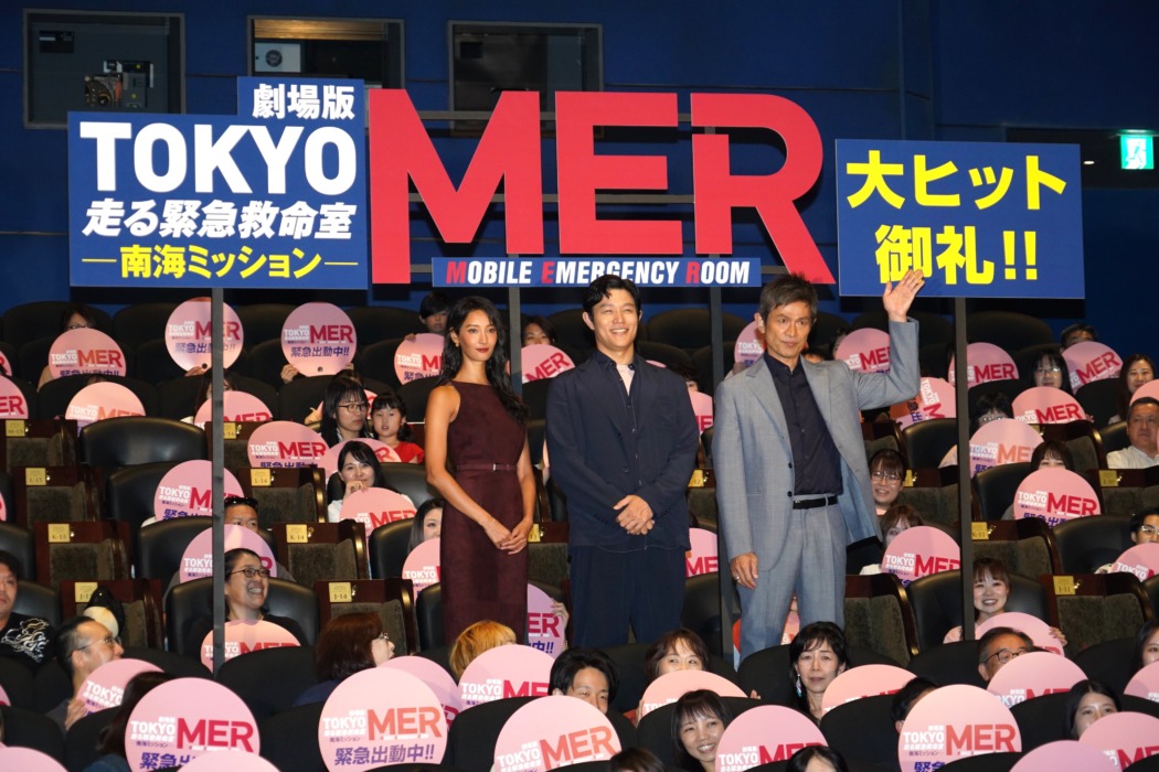 この日の登壇者は大沢たかお、上戸彩、津田健次郎、中村蒼、渡邊圭祐、笹野高史、江口洋介、吉野耕平監督。