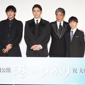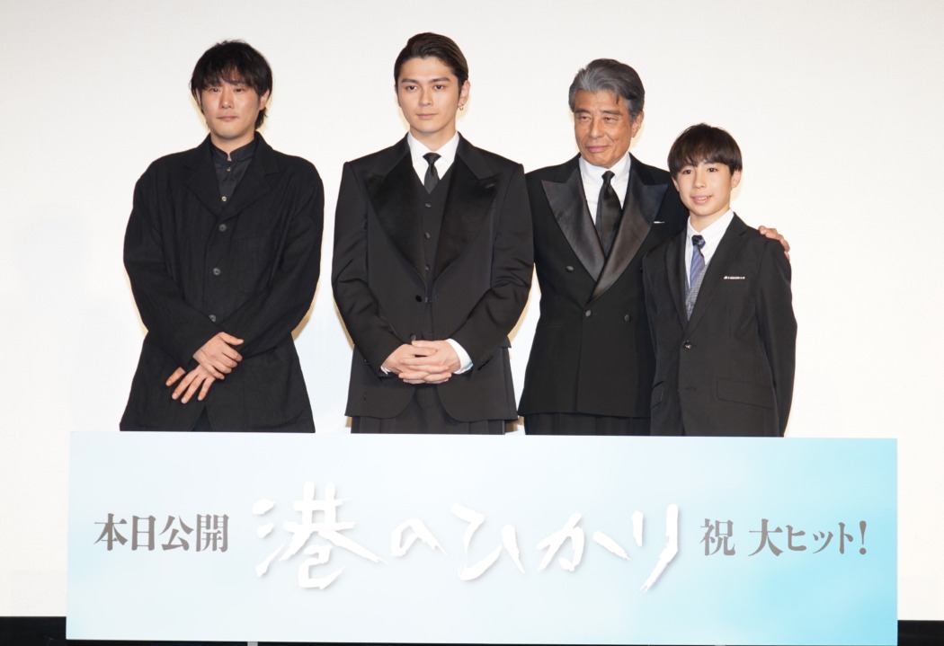 映画『港のひかり』の初日舞台挨拶が11月14日、都内にて行われ、俳優の舘ひろし、眞栄田郷敦、尾上眞秀と藤井道人監督が登壇。一同が「人のためについた嘘」を披露した。