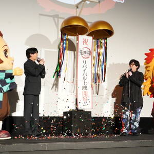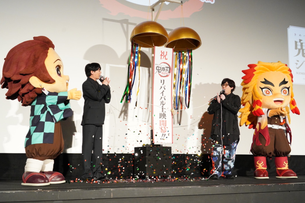 『劇場版「鬼滅の刃」無限列車編』リバイバル上映の舞台挨拶が10日、都内にて行われ、声優の花江夏樹と日野聡が登壇。5年ぶりの劇場上映に感激を語った。